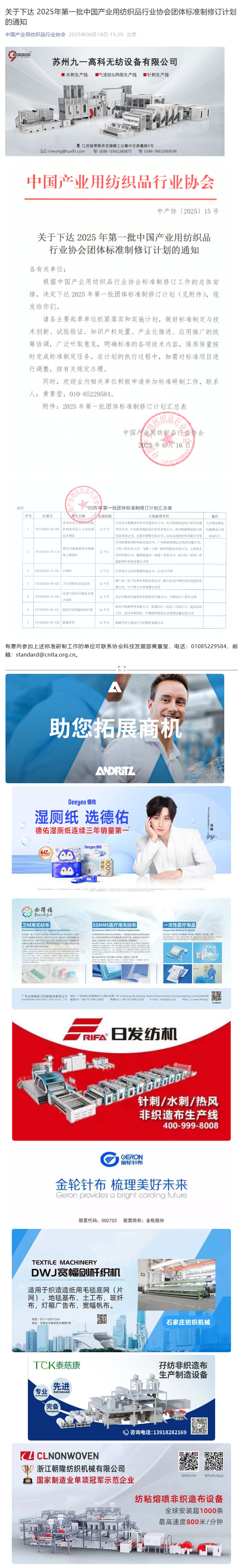 關于征集2025年度產業(yè)用紡織品與非織造布領域標準化需求的通知
