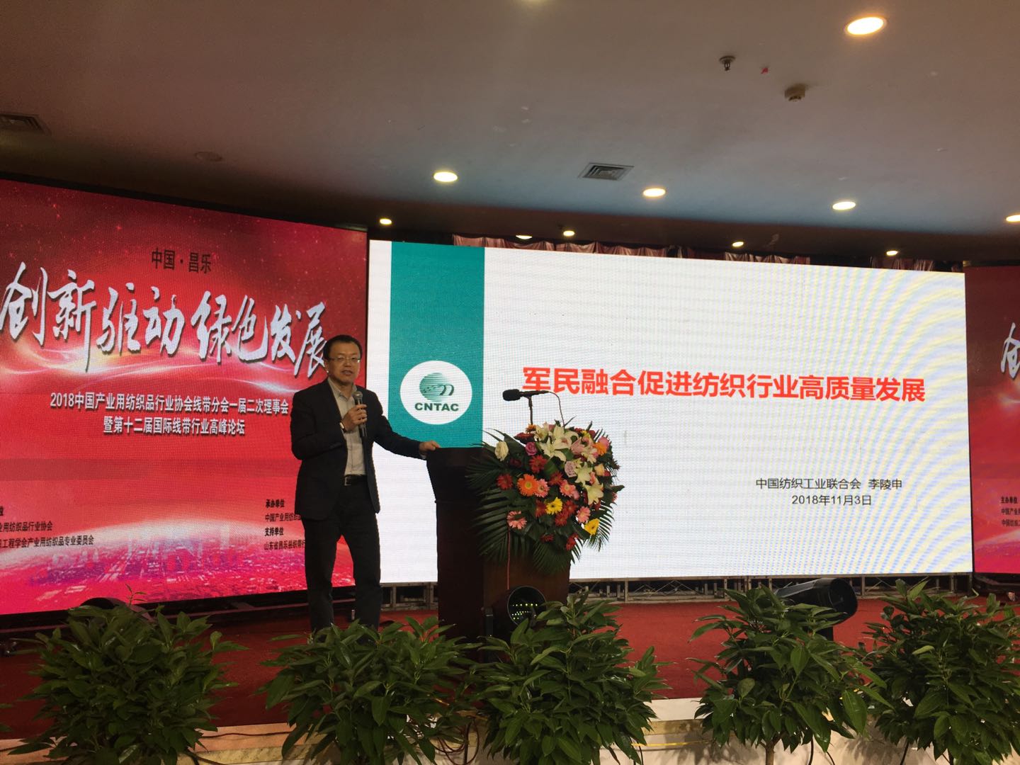 中國(guó)紡織工業(yè)聯(lián)合會(huì)副會(huì)長(zhǎng)、中國(guó)產(chǎn)業(yè)用紡織品行業(yè)協(xié)會(huì)會(huì)長(zhǎng)李陵申,中國(guó)產(chǎn)業(yè)用紡織品行業(yè)協(xié)會(huì)副會(huì)長(zhǎng)李桂梅,山東省濰坊市昌樂(lè)縣人民政府副縣長(zhǎng)張正民,中國(guó)產(chǎn)業(yè)用紡織品行業(yè)協(xié)會(huì)副會(huì)長(zhǎng)、線帶分會(huì)會(huì)長(zhǎng)丁軍民,中國(guó)產(chǎn)業(yè)用紡織品行業(yè)協(xié)會(huì)副會(huì)長(zhǎng)、繩(網(wǎng))分會(huì)會(huì)長(zhǎng)沈明等領(lǐng)導(dǎo),以及來(lái)自相關(guān)科研院所的行業(yè)專家共同出席本次會(huì)議。會(huì)議由線帶分會(huì)副會(huì)長(zhǎng)吳文宗主持。