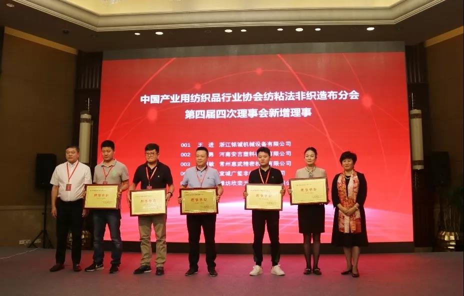 會上還舉行了中產協(xié)紡粘法非織造布分會第四屆四次理事會新增理事授牌儀式。