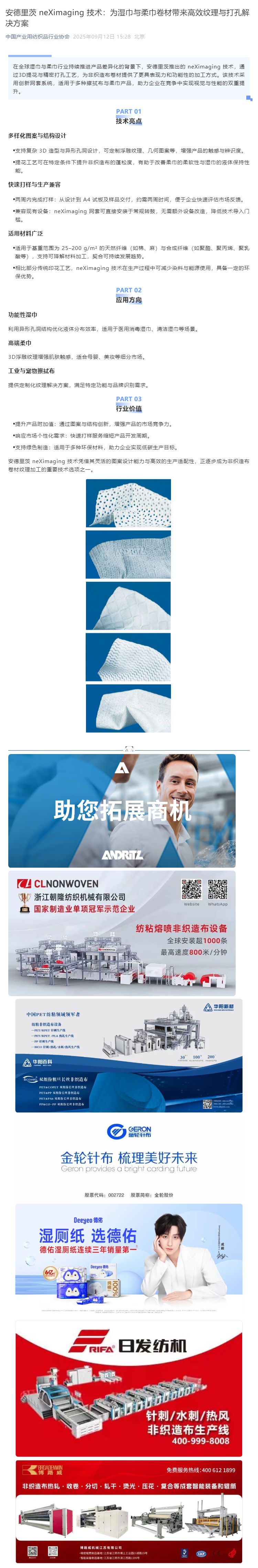 安德里茨 neXimaging 技術(shù):為濕巾與柔巾卷材帶來(lái)高效紋理與打孔解決方案