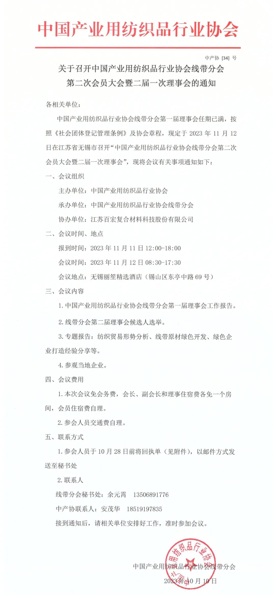 關(guān)于召開(kāi)中國(guó)產(chǎn)業(yè)用紡織品行業(yè)協(xié)會(huì)線帶分會(huì)第二次會(huì)員大會(huì)暨二屆一次理事會(huì)的通知.pdf