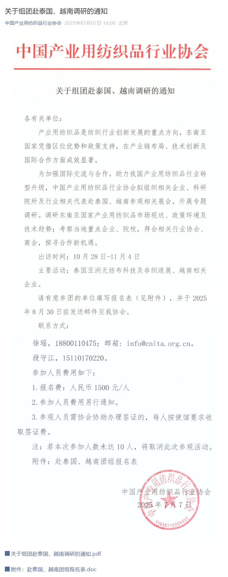 關(guān)于組團(tuán)赴泰國、越南調(diào)研的通知