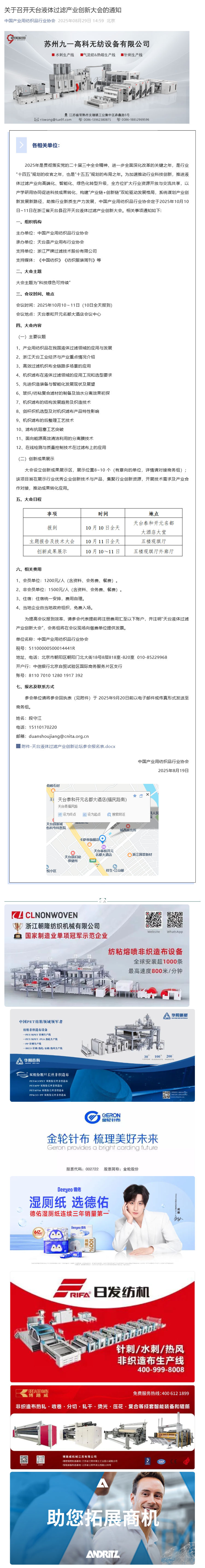 關(guān)于召開天臺(tái)液體過(guò)濾產(chǎn)業(yè)創(chuàng)新大會(huì)的通知